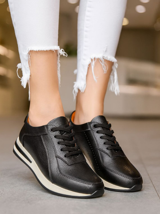 کتونی با جنس رویه و آستر تمام چرم طبیعی گاوی، زیره پیو ترک (راحت ترین زیره) و طبی.