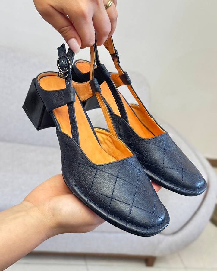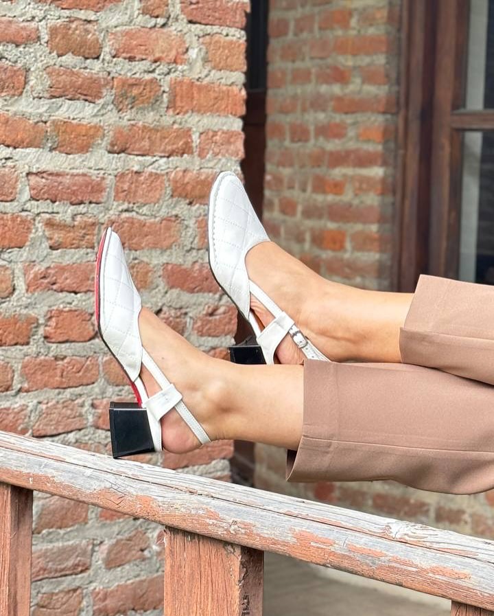 طراحی کلاسیک چرم طبیعی و برش هایی که باید درخشید، با پاشنه ی مکعبی و بند پشت پاشنه برای وقتی که قراره با استایل ت حرف بزنی.